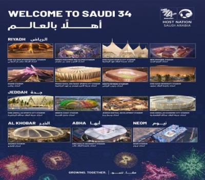 体育资讯12月12日报道宣称 国际足联确认2034年男足世界杯将在沙特举办,本届赛事由15座球场承办,其中8座位于利雅得。