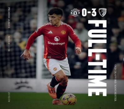 体育资讯12月23日报道宣称 英超第17轮曼联0-3不敌伯恩茅斯,近4轮3负。