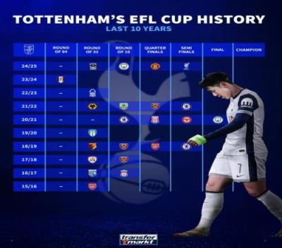 何时圆冠军梦热刺近10年联赛杯战绩:1次亚军,4次止步半决赛