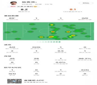 触球35次,传球26次,传球成功率96.2%,关键传球1次