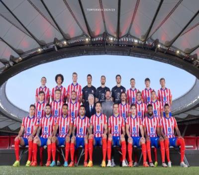 马竞后卫吉梅内斯占据第一排中间位置,他的两侧是阿斯皮利奎塔和科雷亚,阿尔瓦雷斯在第一排,格列兹曼在第二排西蒙尼旁边。