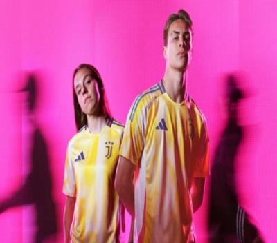 尤文图斯新赛季客场球衣由阿迪达斯设计生产,球衣主体为大胆的亮黄色,搭配白色重新诠释了俱乐部的标志性条纹,球衣两侧还有粉色点缀。