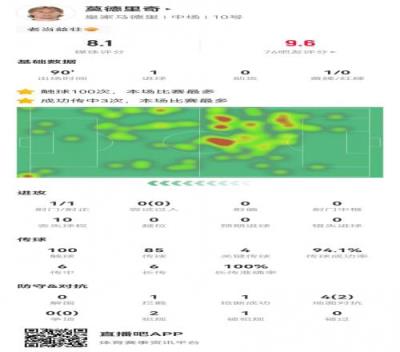 体育资讯2月6日报道宣称 皇马在本轮国王杯3-2绝杀莱加内斯,莫德里奇本场数据如下: