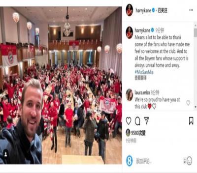凯恩出席了拜仁球迷造访俱乐部的活动,他在社交媒体上晒出与球迷们的合照,写道:“能够感谢那些让我在俱乐部感到如此受欢迎的球迷,这对我来说意义重大。”