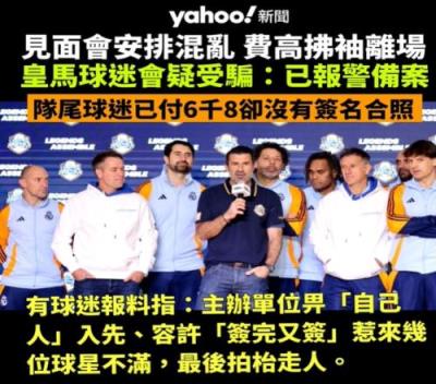 而由于主办方安排混乱,导致签名环节球星们签完又签,惹得菲戈等数名球星不满直接走人。
