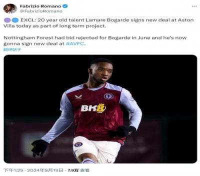 博加德目前的合同2025年到期,罗马诺指出,维拉将这位20岁的防守型中场视为长期计划的一部分,双方将在今天签下一份新合同。诺丁汉森林6月份曾报价博加德,但遭到维拉的拒绝。