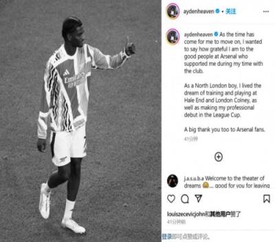 体育资讯2月1日报道宣称 18岁中卫埃登-海文更新社媒,告别阿森纳。