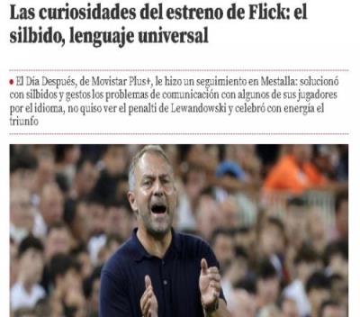 体育资讯8月20日报道宣 西甲首轮,巴萨2-1击败瓦伦西亚。《世界体育报》关注到巴萨主帅弗里克的场边行为和细节。