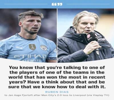 鲁本-迪亚斯:“你知道吗,你正在和一位来自近年来赢球最多的球队之一的球员对话,我们会思考这个问题,确信知道如何处理这个问题。”