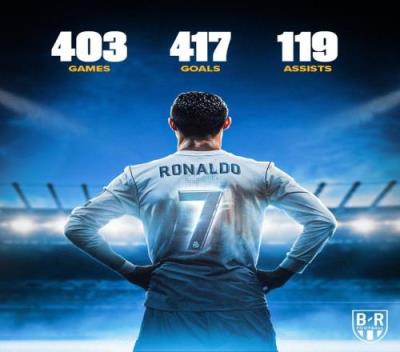 身穿9号球衣的C罗在09-10赛季各项赛事35场贡献33球10助攻。而在得到7号球衣后,C罗则留下了403场417球119助攻的惊人数据。