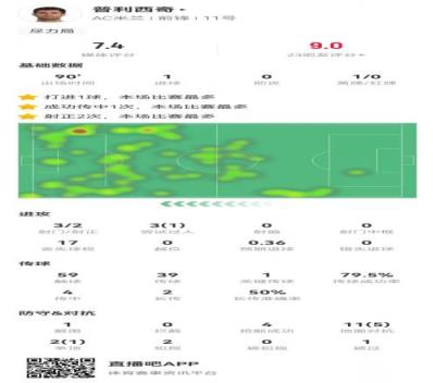 体育资讯1月30日报道宣称 米兰在本轮欧冠1-2不敌萨格勒布迪纳摩,普利西奇本场数据如下: