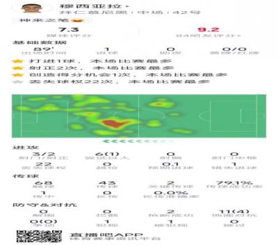 体育资讯11月10日报道宣称 在本轮的德甲,拜仁1-0小胜圣保利,穆西亚拉打进唯一进球,以下为他在本场数据: