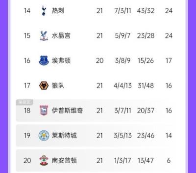 体育资讯01月17日报道宣称 英超第21轮今天凌晨结束两场对决,南安普顿1-3不敌曼联,伊普斯维奇0-2不敌布莱顿。