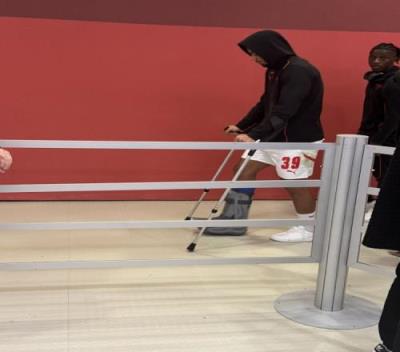媒体拍摄到,比赛之后亨里希斯拄拐离开安联球场。