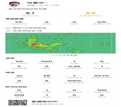 马奎尔本场数据:错失1次进球机会&1次失误致丢球,评分6.1