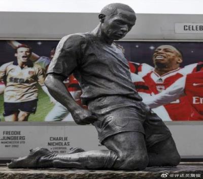 詹俊在社媒晒出了亨利滑跪动作的雕像,并配文写道: