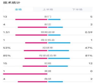国米11那不勒斯全场数据:射门135,射正42,控球率53%47%