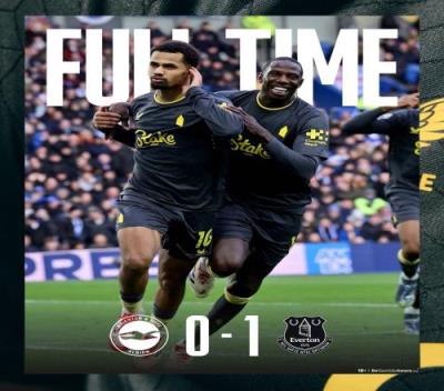 体育资讯01月26日报道宣称 英超第23轮,埃弗顿客场1-0力克布莱顿,连斩热刺海鸥的太妃糖近2轮拿6分暂列英超第16。