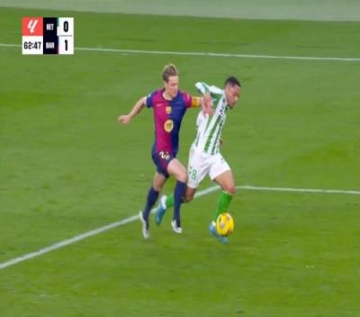体育资讯12月8日报道宣称 西甲第16轮,巴塞罗那客场2-2战平皇家贝蒂斯。比赛下半场,罗克在德容的防守下在禁区内倒地,主裁判经VAR回放,判罚点球。