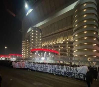 米兰球迷拉横幅抗议球队表现:无能的管理层,缺乏雄心的俱乐部