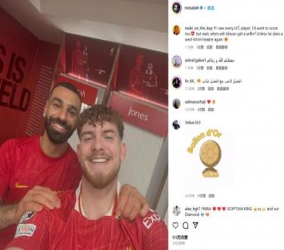 作为赛后保留节目,萨拉赫在赛后通过社媒晒出两人的合照,仍然没有附加文字内容。