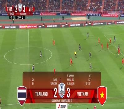 比赛第90+20分钟,泰国门将巴迪瓦参与角球进攻未果,越南球员阮海龙推空门得手杀死比赛!比赛最终在第111分钟结束。