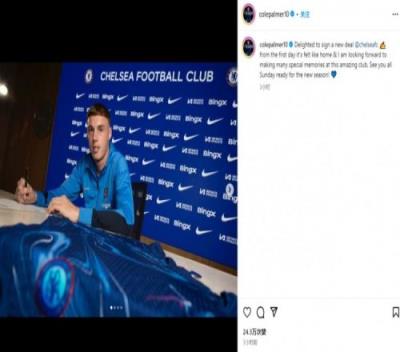 帕尔默通过社媒晒出续约照,并纪念道:“很高兴和切尔西签下新合同。从来到这里的第一天起,我就宾至如归。”