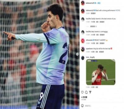 哈弗茨也在赛后通过社媒晒出自己的庆祝照,并配文:“强势回归!”
