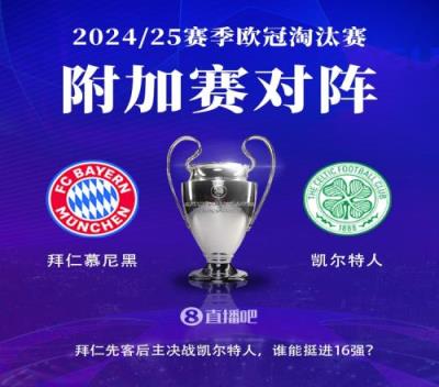 体育资讯01月31日报道宣称 2024/25赛季欧冠淘汰赛阶段附加赛抽签结果今日出炉,拜仁vs凯尔特人,拜仁先客后主争夺16强名额。