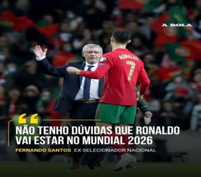 费尔南多-桑托斯表示:“我总是期待C罗能保持高水平,直到最后一刻。我毫不怀疑C罗会参加2026世界杯,他会拼尽全力为葡萄牙再赢得一座冠军,C罗是世界上最好的球员。”