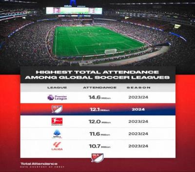 火爆2024年美职联观众数超1210万超德意西法&全球仅次于英超
