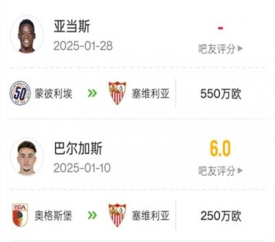 花800万欧已是“大户”!塞维利亚是目前冬窗支出最高的西甲球队
