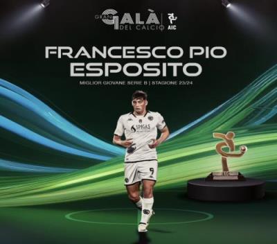 体育资讯12月3日报道宣称 意大利足协在近日举办了年度颁奖典礼,国米外租斯佩齐亚的中锋埃斯波西托当选23-24赛季意乙最佳年轻球员。