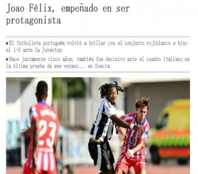 西媒表示,在马竞对阵尤文的季前赛最后一场友谊赛中,费利克斯再次成为焦点。他作为替补在下半场登场,仅用不到三分钟就为球队首开纪录。这是他今夏季前赛的第二个进球,此前他在对阵赫塔菲的比赛中也有进球。