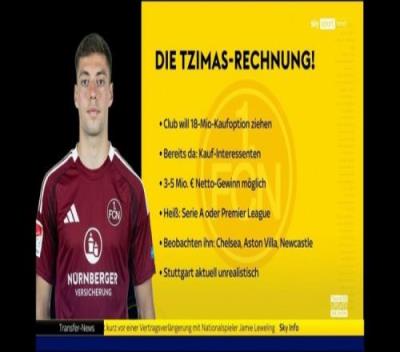 “齐马斯本赛季被外租纽伦堡,在德乙13场7球2助攻,表现相当抢眼。纽伦堡想要激活租借合同中的1800万欧元买断条款,他们计划在明夏直接出售齐马斯,从而获得大概300万到500万欧元的利润,谈判正在进行中。”