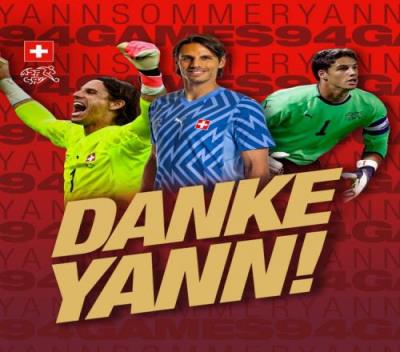 瑞士国家队官方社媒晒出为索默制作的海报,确认他从国家队退役,并感谢他12年来做出的贡献。
