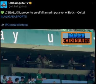 体育资讯11月12日报道宣称 西班牙六台节目El Chiringuito报道,塞巴略斯日前到现场观战了贝蒂斯vs塞尔塔的比赛。