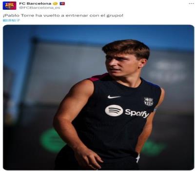 今天,巴萨官推发布了托雷参加训练的照片,并宣布托雷已经恢复了球队合练。