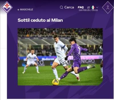 体育资讯2月4日报道宣称 佛罗伦萨官方宣布,将球队边锋索蒂尔租借给米兰。