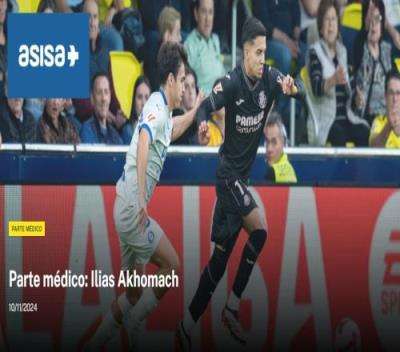 阿克霍马奇在对阵阿拉维斯的比赛中破门,但随后因伤离场。比利亚雷亚尔官方发布公告,确认这位20岁的边锋十字韧带完全撕裂,右膝内侧副韧带扭伤,他将很快接受手术。