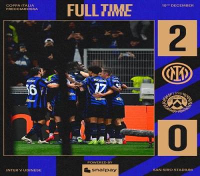 体育资讯12月20日报道宣称 国米在本轮意大利杯2-0力克乌迪内斯,成功晋级意大利杯八强。