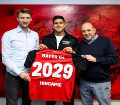 官方:勒沃库森和22岁厄瓜多尔中卫因卡皮耶续约至2029年