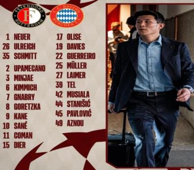 体育资讯1月21日报道宣称 拜仁将在本轮欧冠对阵费耶诺德,球队官方也公布了本场比赛大名单,具体如下: