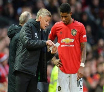 19/20赛季双红会,索尔斯克亚为拉什福德讲解战术