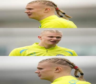 哈兰德在社交媒体上晒出训练照片,展示自己的新发型,两束辫子非常醒目,他在2023年也曾有过类似的造型。