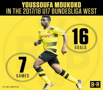 2017-18赛季,年仅13岁的穆科科横空出世,跨级代表多特U17出战28场比赛,打进恐怖的40球并有7次助攻。当时所有媒体都将穆科科视为不世出的天才,但如今看来,穆科科这样的表现,其实是在和其他人同龄甚至大龄的情况下踢出的。