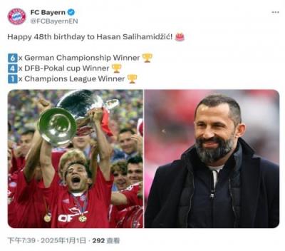 体育资讯1月1日报道宣称 今天是萨利哈米季奇的48岁生日,拜仁官方为他送上祝福。
