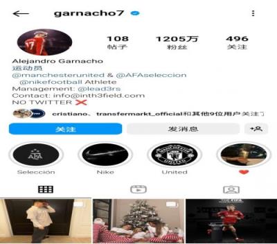 体育资讯1月5日报道宣称 今日,有球迷发现曼联前锋加纳乔的推特账号已无法正常访问。与此同时,在另一个社交平台Instagram上,加纳乔写上了NO TWITTER❌的字样,宣布停用推特。