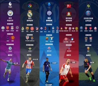 五大联赛中,英超卫冕冠军距离榜首最遥远,西甲、意甲、德甲、法甲的卫冕冠军都还处在争冠行列。