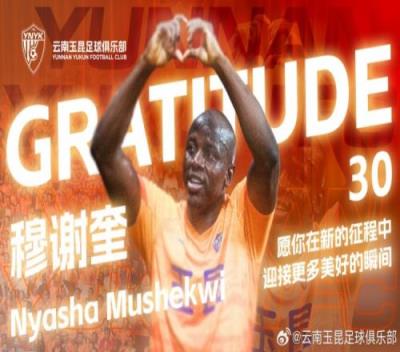 经友好协商,即日起,津巴布韦籍球员尼亚沙-穆谢奎与我俱乐部正式解除工作合同,特此公告。